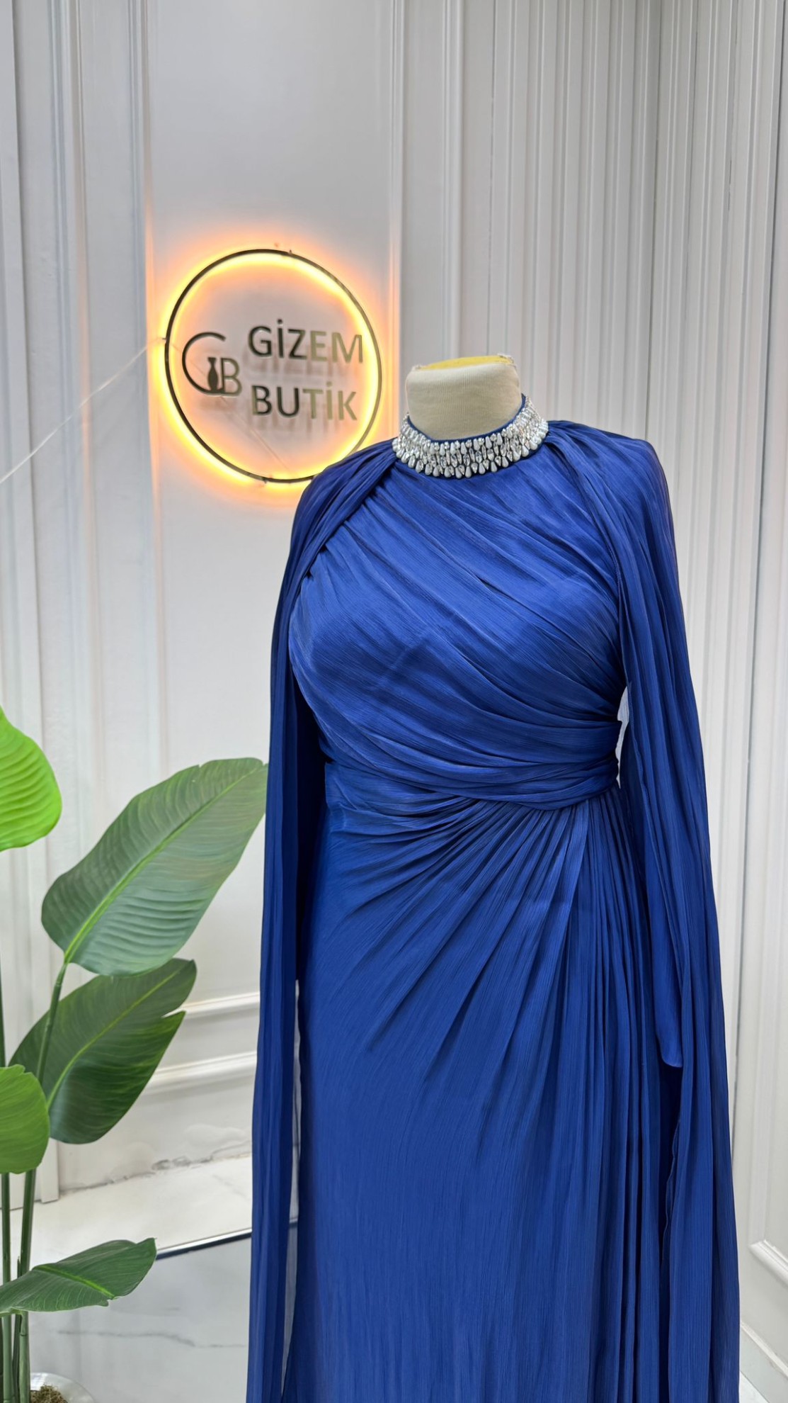 Özellikler Drapeli, Birleşik Pelerin Detaylı Boyun Kısmı Taşlı