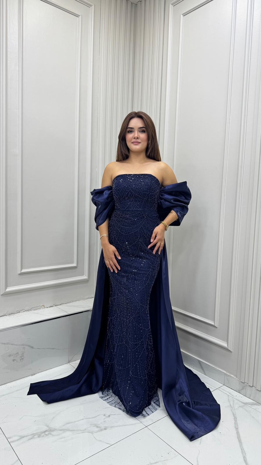 Özellikler | Kendinden Boncuk İşlemeli Pelerinli Parlak Saten Kumaşı |