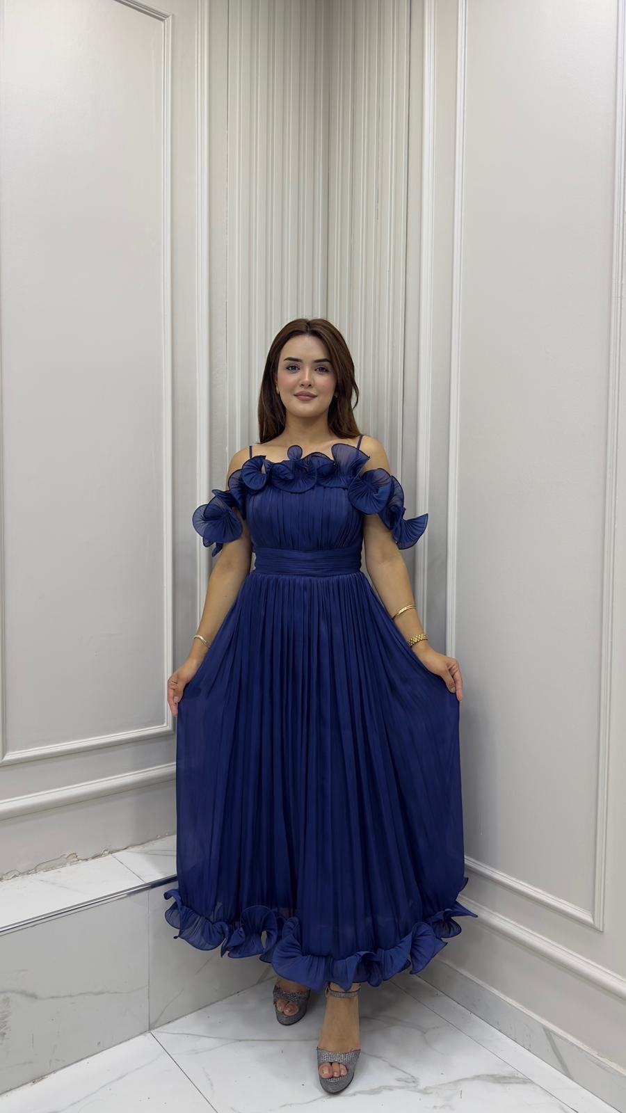 Özellikler | Askılı Önü Drapeli Etek ve Ömuza Kadar Fırfırlı |