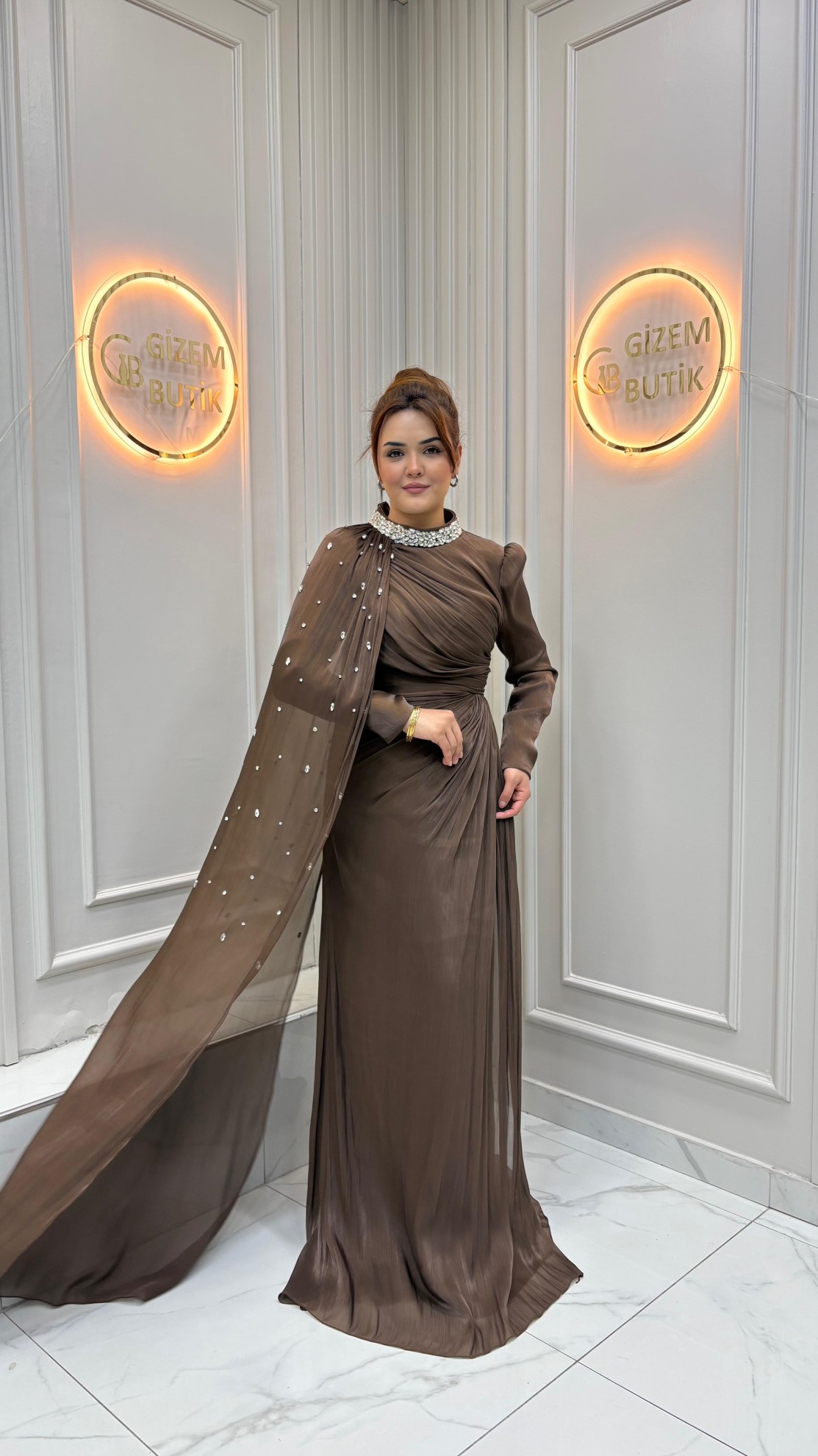 | Özellikler | Taşlı Pelerin Detaylı, Drapeli |