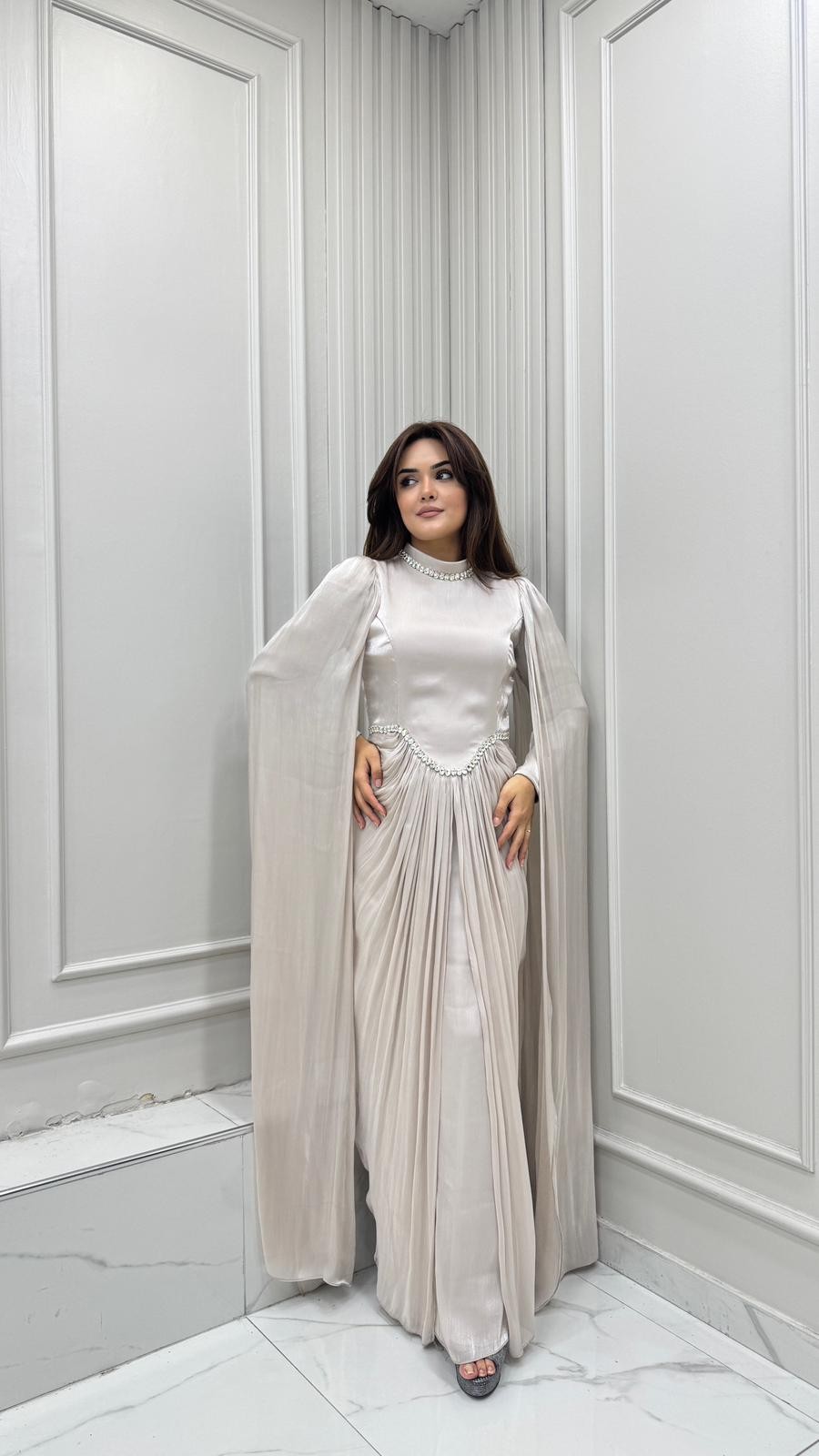 | Özellikler | Belden Aşağısı Drapel Kol Detayı Pelerinli Boyun Detayı Taşlı |