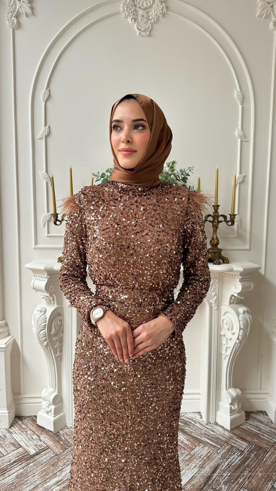 Özellikler | Kol Detayı Tüylü Likralı Kumaş Etek Ucu Gilenlı Arkası Fermuar Detaylı Boncuk İşlemeli |