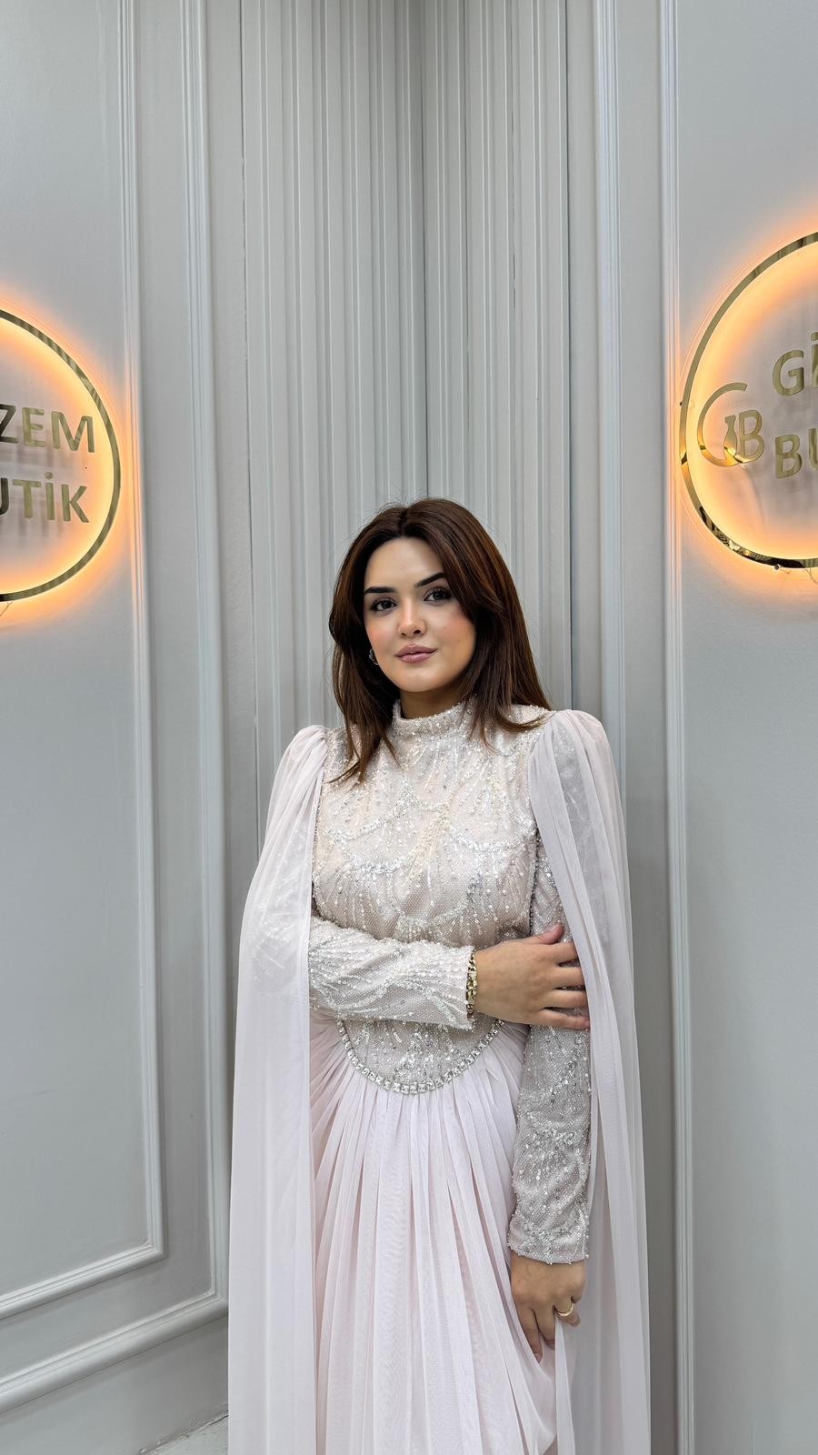 | Özellikler | Yırtmaç Detaylı Boncuk İşlemeli Pelerinin Detaylı |