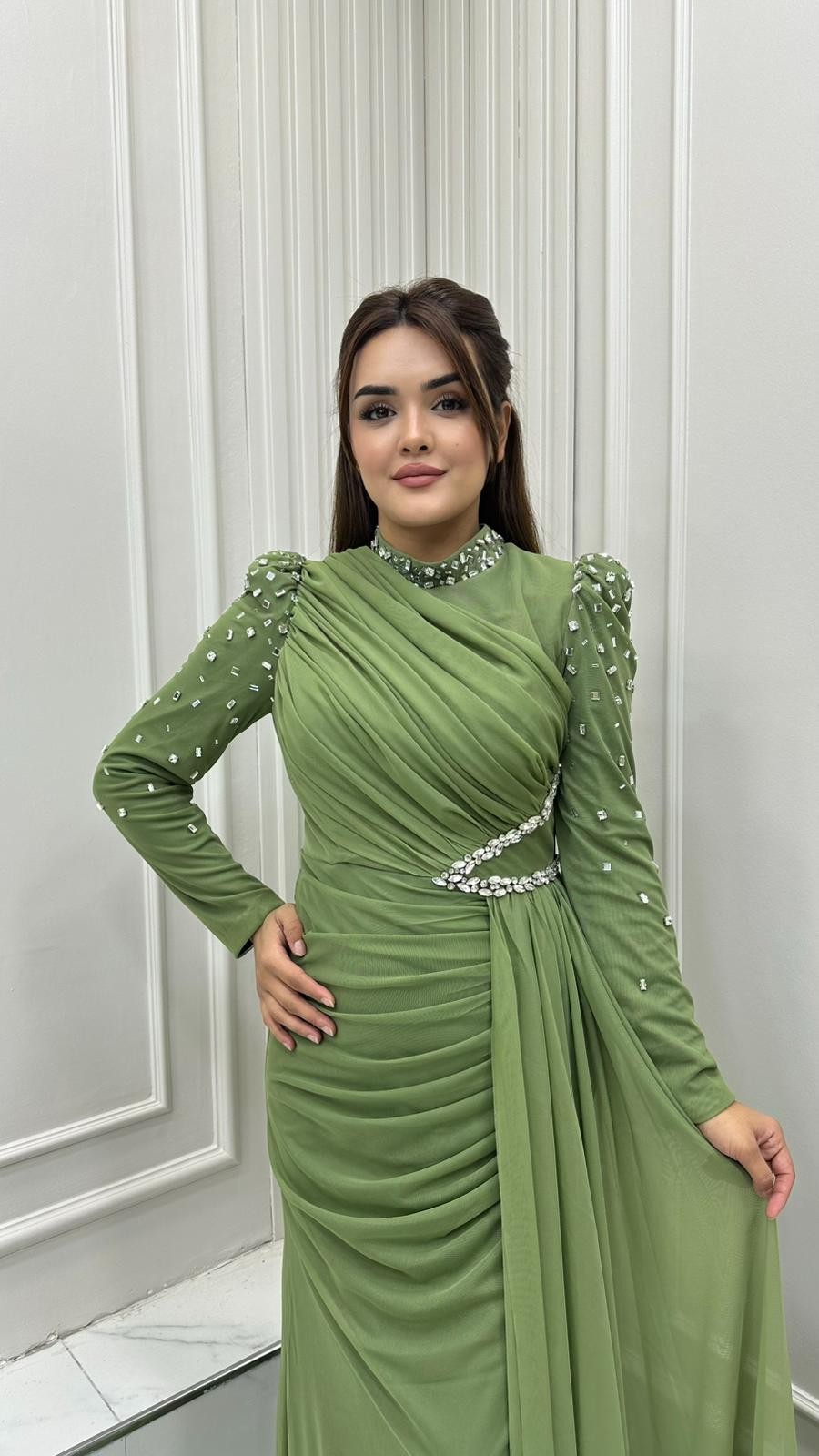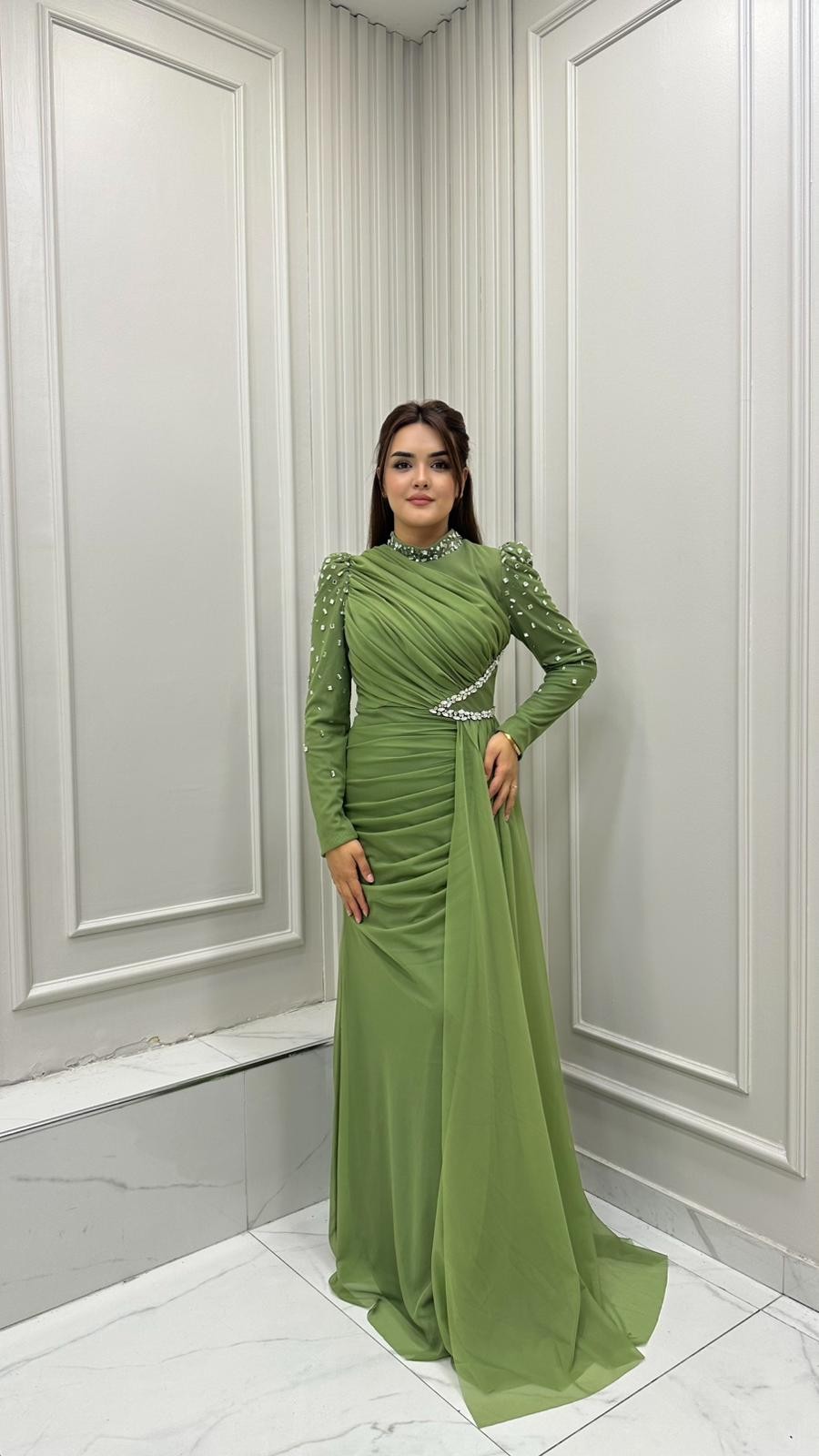 | Kumaş | Tül Üstüne Taş Ve Boncuk İşlemeli |