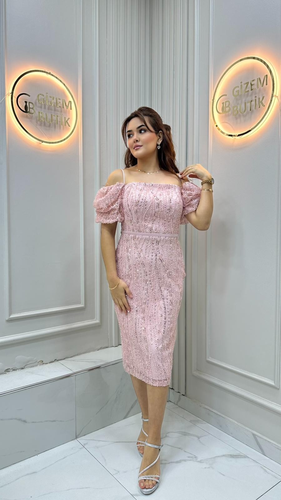 Özellikler Askılı Kare Yaka, İnci Payet Abiye