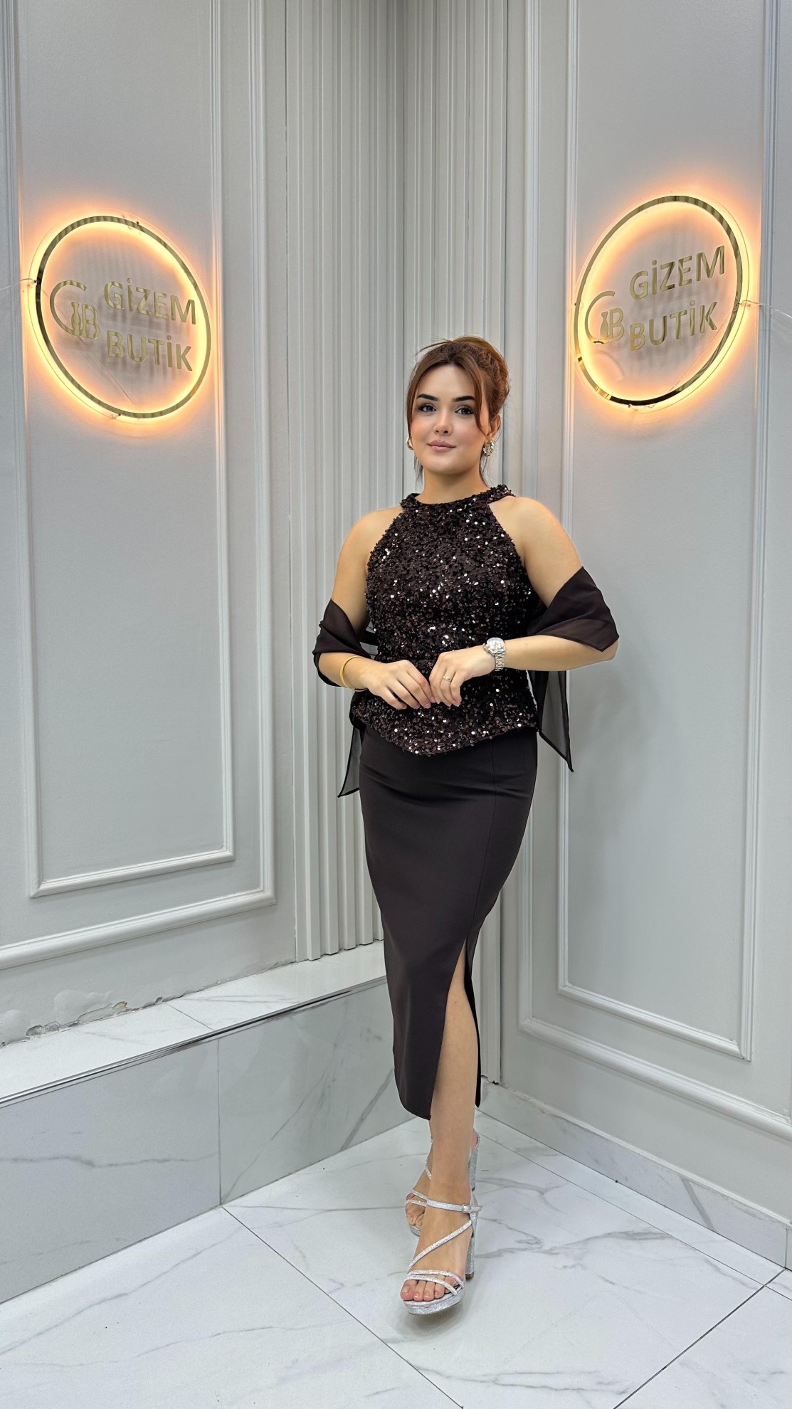 | Kumaş | Krep Kumaş Üstü Pul İşlemeli |