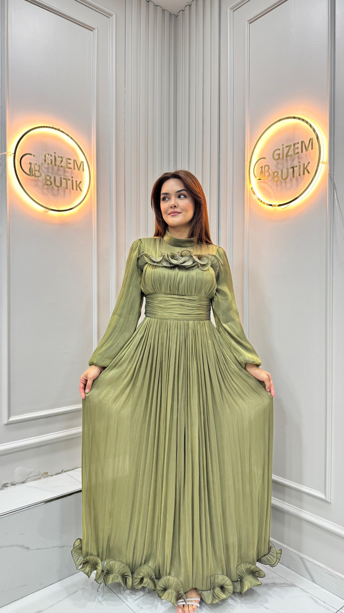 | Özellikler | Etek Ucu Ve Göğüs Detayı Fırfırlı Kendiliğinden Kemerli |