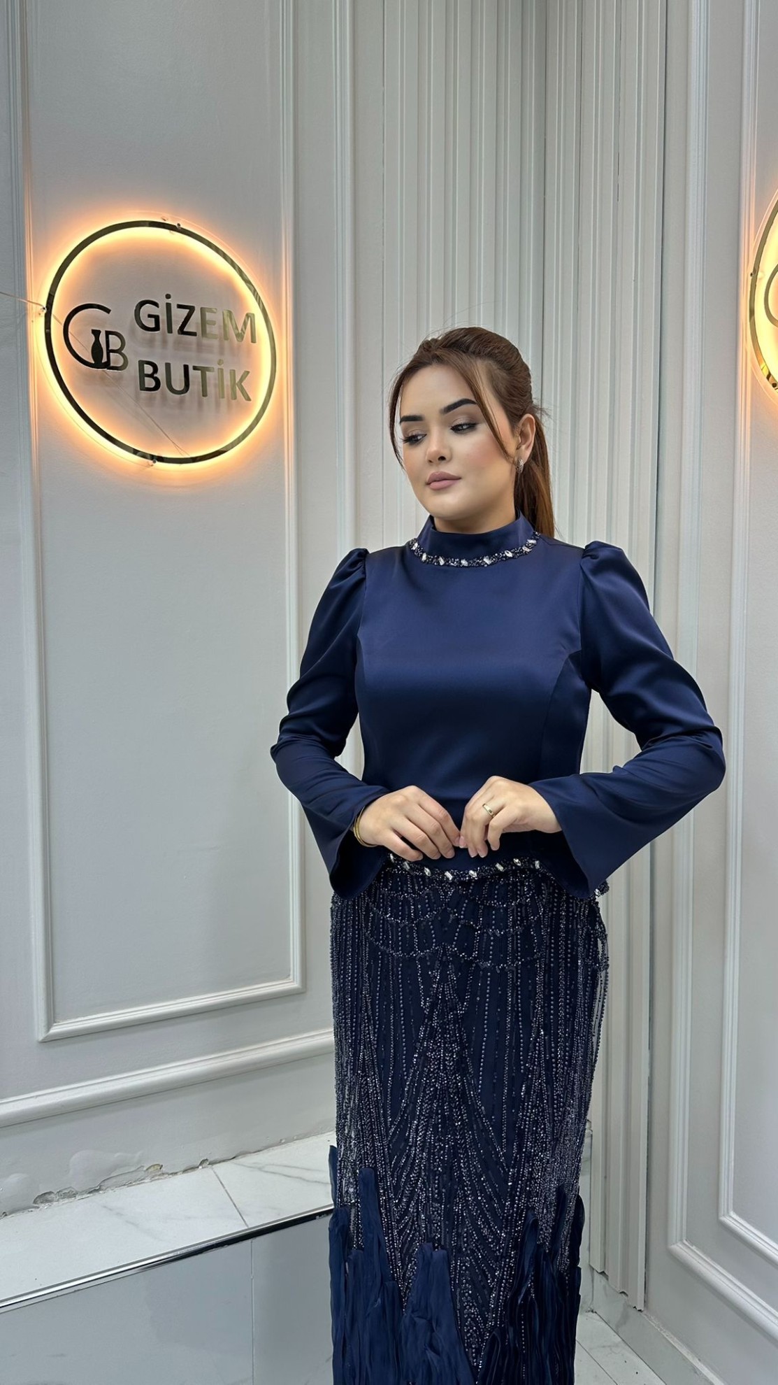 İpek Abiye Lacivert İpek Abiye Lacivert