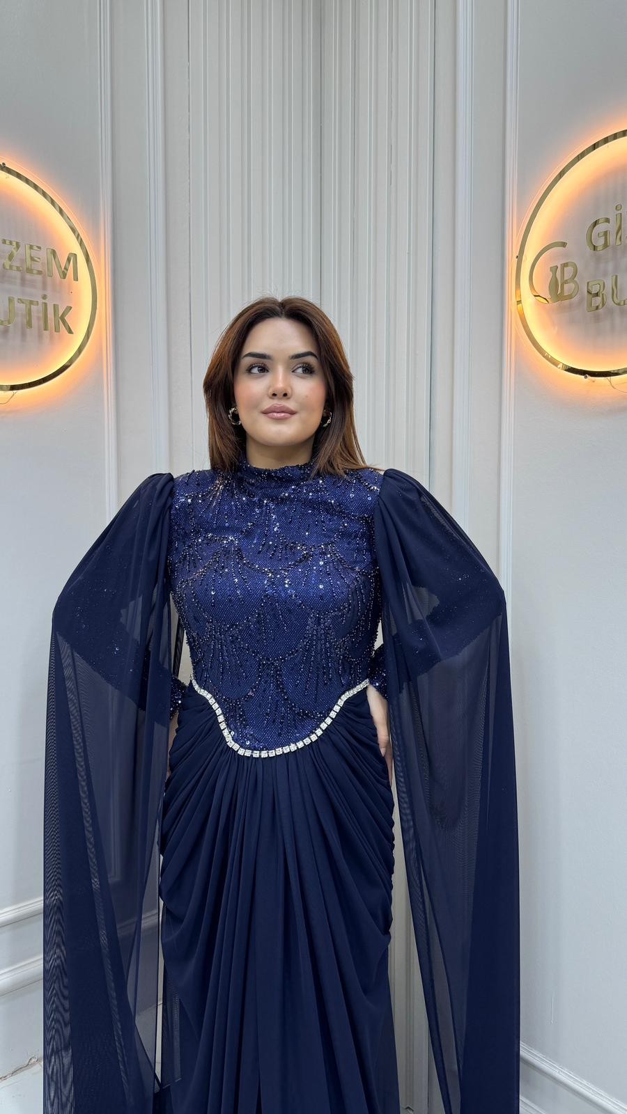 | Özellikler | Yırtmaç Detaylı Boncuk İşlemeli Pelerinin Detaylı |